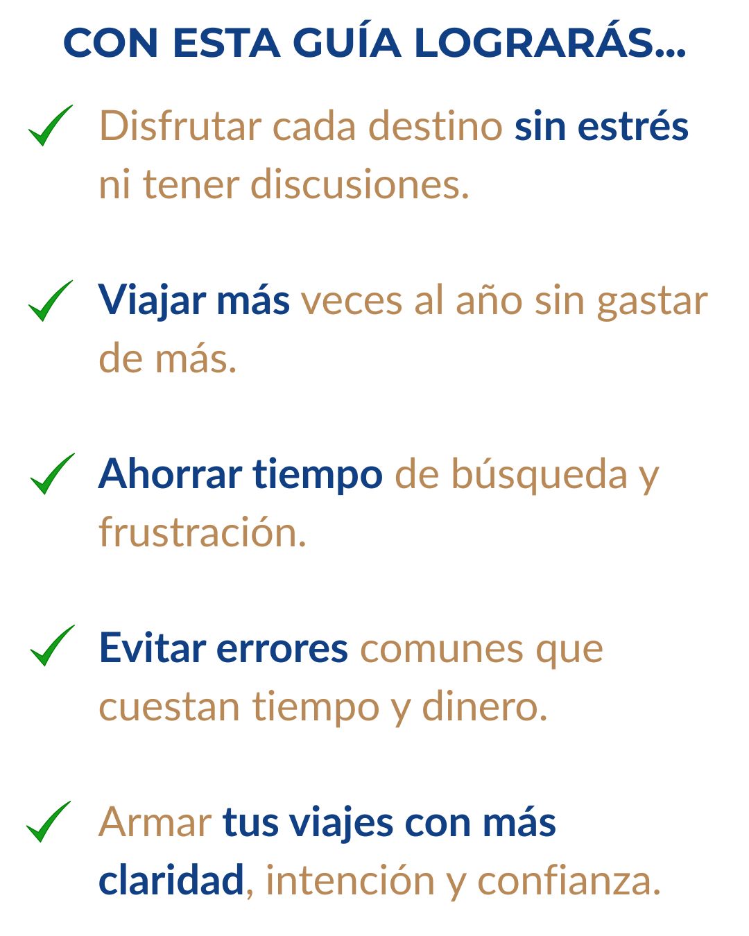 Incluye bonos extra que te ayudarán a planificar mejor, ahorrar más y vivir cada viaje con intención. Y no, no tienen costo adicional 😉